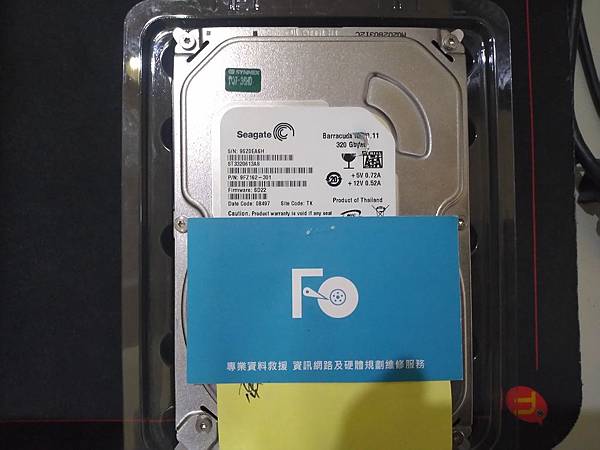FuYuan復援-行動硬碟讀不到、五股資料救援、硬碟救援。知名大醫院seagate硬碟有不明聲音,經打開硬碟殼,1個盤片2個面,1面已划傷,算是重度划傷!